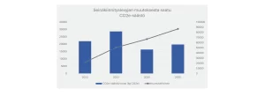 Lisäksi olemme tehneet useita hankkeita, joilla pyritään vähentämään turhien materiaalien käyttöä. Esimerkkinä seinäkiinnityslevyjen pienentäminen. Kuvassa näkyvät tähän mennessä saavutetut CO2e-säästöt tämän muutoksen ansiosta.